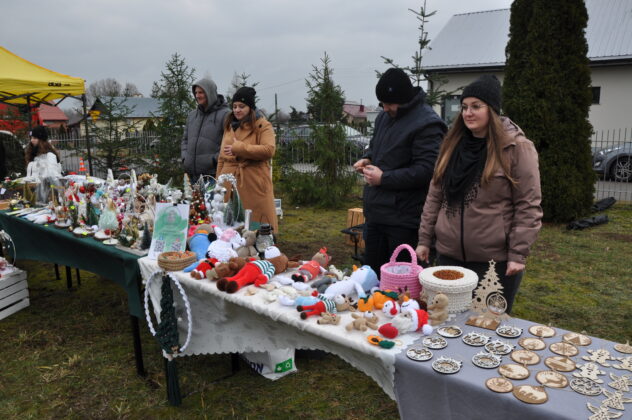 Swoją ofertę zaprezentowali lokalni wystawcy, proponując ręcznie wykonane dekoracje bożonarodzeniowe: szopki, stroiki, wieńce na drzwi, ozdoby choinkowe, lampiony oraz drewniane choinki. Nie zabrakło także regionalnych produktów – miodów, syropów, wiejskiego chleba oraz innych wyrobów.