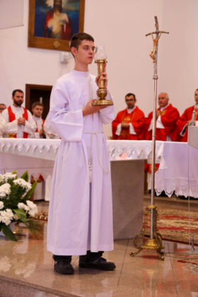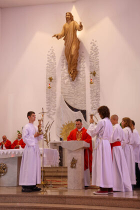 Centralnym punktem dnia była Eucharystia, której przewodniczył Biskup Sandomierski Krzysztof Nitkiewicz. Wraz z nim Mszę świętą koncelebrowali kapłani posługujący w ruchu oazowym oraz duszpasterze sanktuarium.
