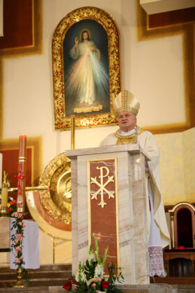 – W „Dzienniczku” św. Faustyna Kowalska zapisała słowa, które powiedział jej Jezus: „Przez obraz ten udzielać będę wielu łask dla duszy”. Wierzymy, że ta obietnica spełni się także na umiłowanej ziemi diecezji sandomierskiej. Stoimy dziś razem w szczególnym momencie – w Sanktuarium Bożego Miłosierdzia. Przychodzimy z tym wszystkim, co na co dzień nosimy w sercu – z nadzieją, ale i z niepokojem, z wiarą, ale też i z pytaniami o przyszłość świata i człowieka. Ten czas, który rozpoczynamy jest dla nas wielkim darem, ale i zadaniem – bo łaskę trzeba przyjąć i nią żyć. Nie zmarnować jej. Patrząc na to, co dzieje się wokół nas w dzisiejszym świecie, łatwo dostrzec, jak bardzo potrzebujemy dziś Bożego miłosierdzia i płynącego z niego pokoju. Jak wiele jest napięć, konfliktów, wojen, podziałów, lęku… Jak często zło staje się wydawać groźne pomroki i budzić w nas niepewność i lęk. A jednak właśnie w takim czasie Pan Bóg przychodzi do nas ze swoim miłosierdziem. Cichym, pokornym, ale jakże potężnym. Bo to nie grzech, ale miłosierdzie ma ostatnie słowo – zaznaczył hierarcha.