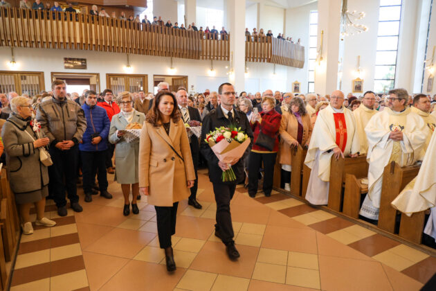 – Rozpoczynamy tę pielgrzymkę w niedzielę Miłosierdzia, w sanktuarium Bożego Miłosierdzia. I w dniu, w którym kościół czyta Ewangelię o Wieczerniku – o zamkniętych drzwiach i lęku apostołów. Człowiek, kiedy się boi, zamyka się. A zmartwychwstały Pan przychodzi mimo drzwi zamkniętych. Nie wypomina, nie oskarża, ale mówi: „Pokój wam”. Taka jest logika Bożego miłosierdzia. Słowa „pokój wam” użył także Ojciec Święty Leon XIV na początku swojego pontyfikatu, wskazując, że świat jest spragniony pokoju i musi wrócić do jego źródła – a tym źródłem jest Boże miłosierdzie. Chrystus staje dziś pośród nas tutaj, w tej świątyni Bożego Miłosierdzia i mówi: „Pokój wam”. Nie przychodzi do ludzi doskonałych, ale do tych, którzy – jak apostołowie – są zamknięci i zalęknieni. Do nich przychodzi ze swoim światłem – światłem zwycięstwa, życia i nadziei, które prowadzi człowieka do Boga. To właśnie to światło ma rozlewać się na całą diecezję w czasie peregrynacji, będącej odpowiedzią na znaki czasu – mówił bp Nykiel.