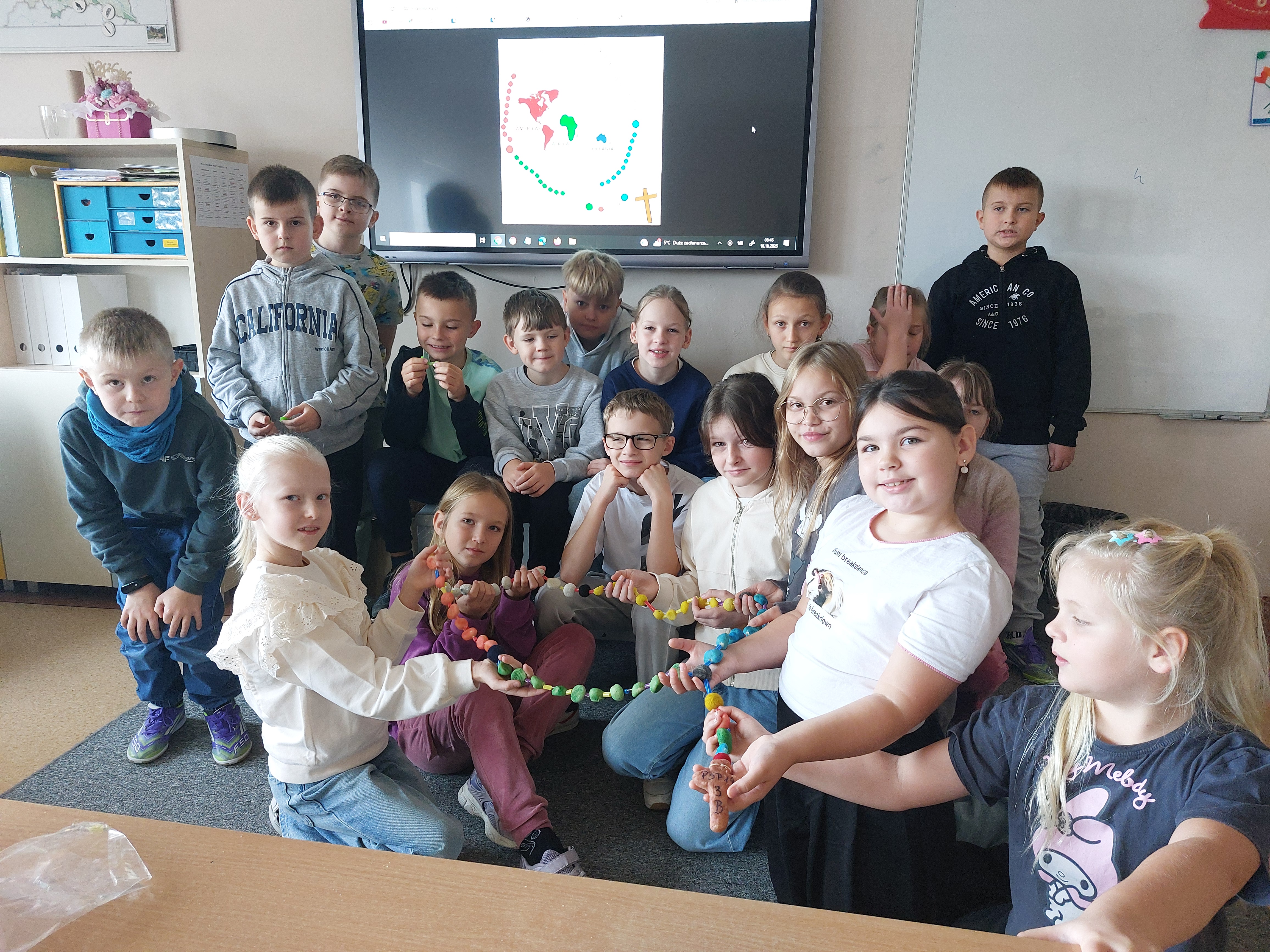 – W tym roku są również różańce wykonane przez grupy osób. Dzieci komunijne z klasy III przygotowały z masy solnej różaniec misyjny. Przy okazji wykonywania pracy plastycznej poznawały kolory symbolizujące kontynenty oraz specyfikę pracy misjonarza – informuje ks. Stanisław Gurba, katecheta w PSP nr 14 w Ostrowcu Świętokrzyskim.