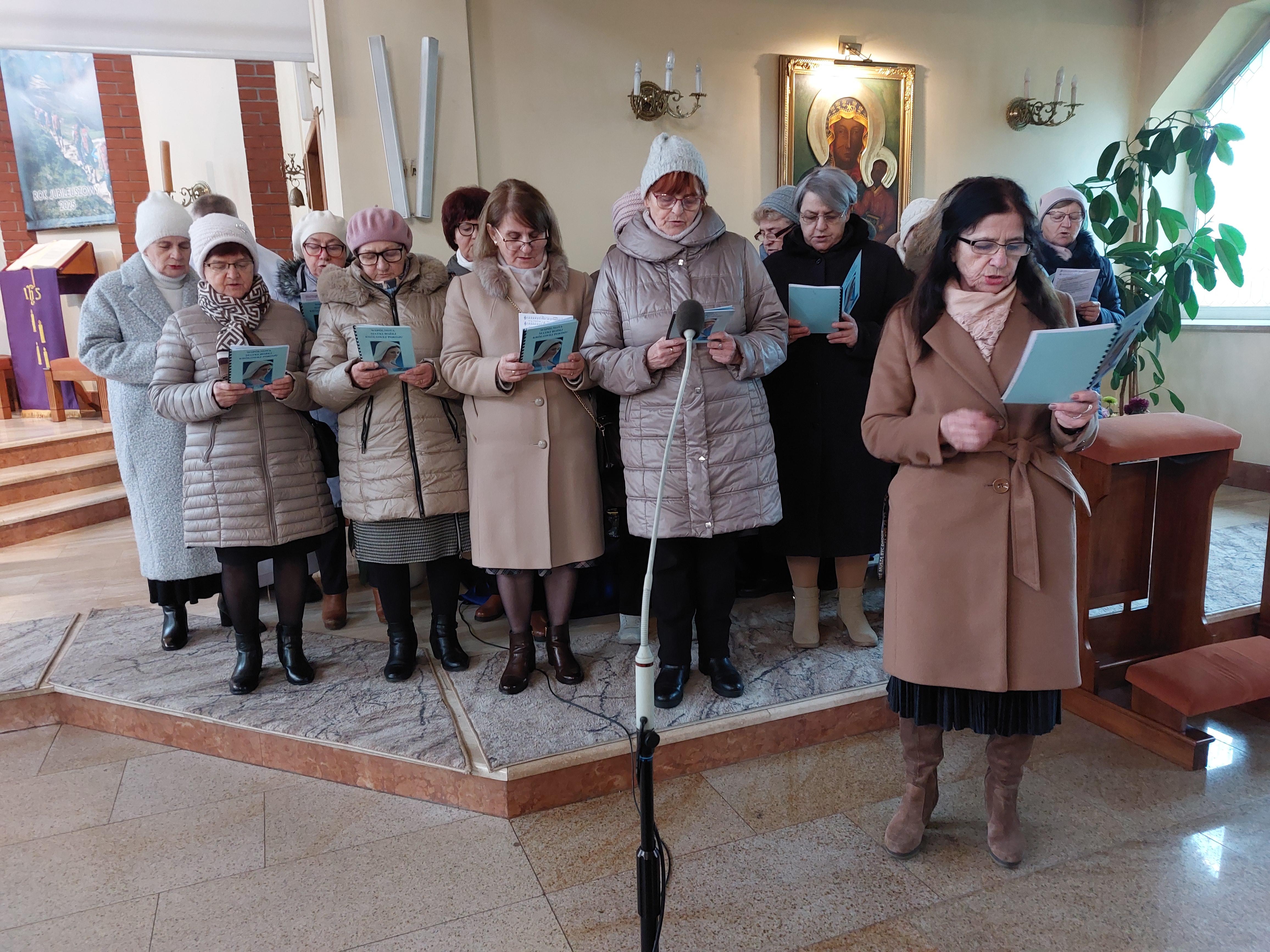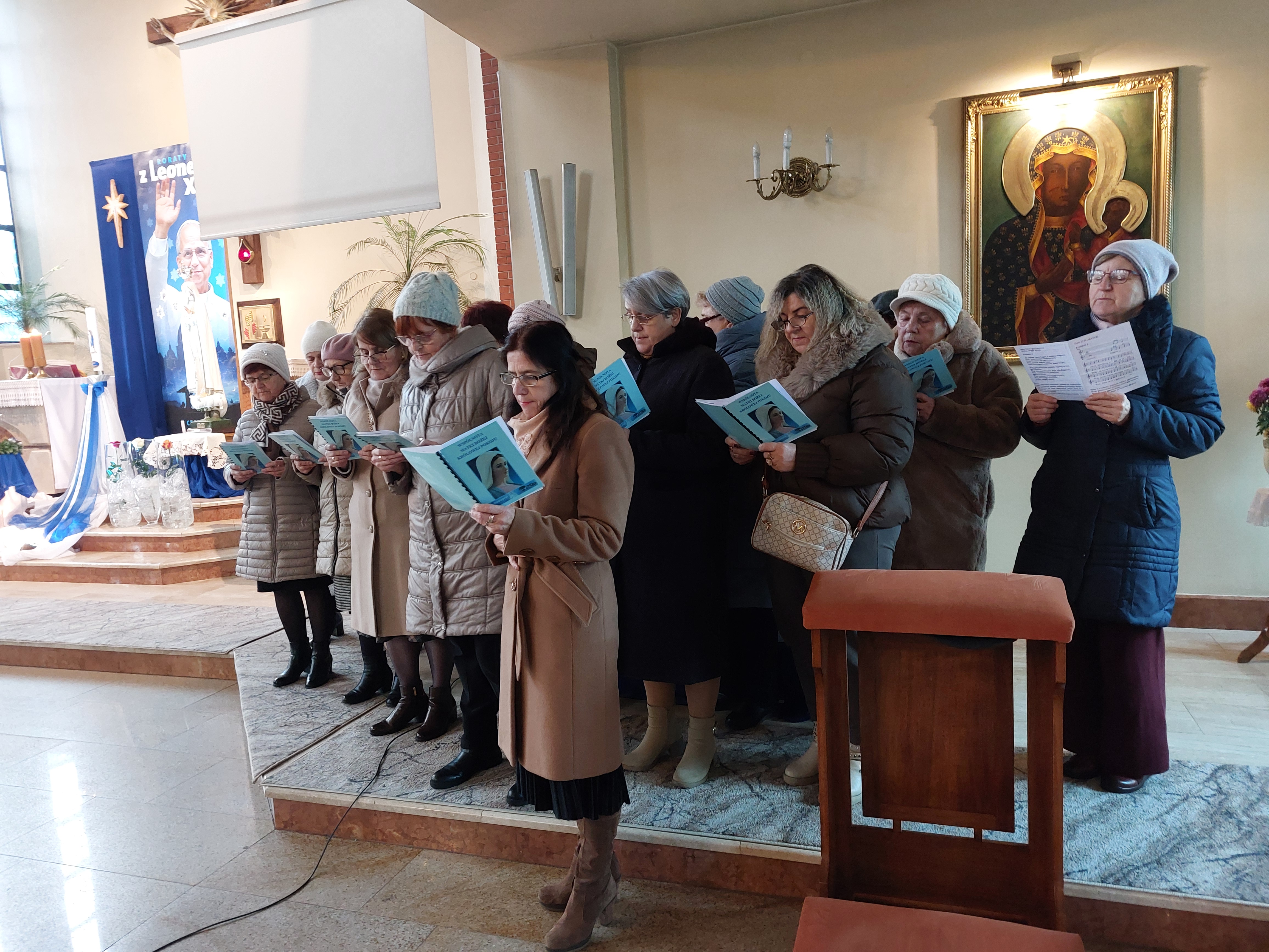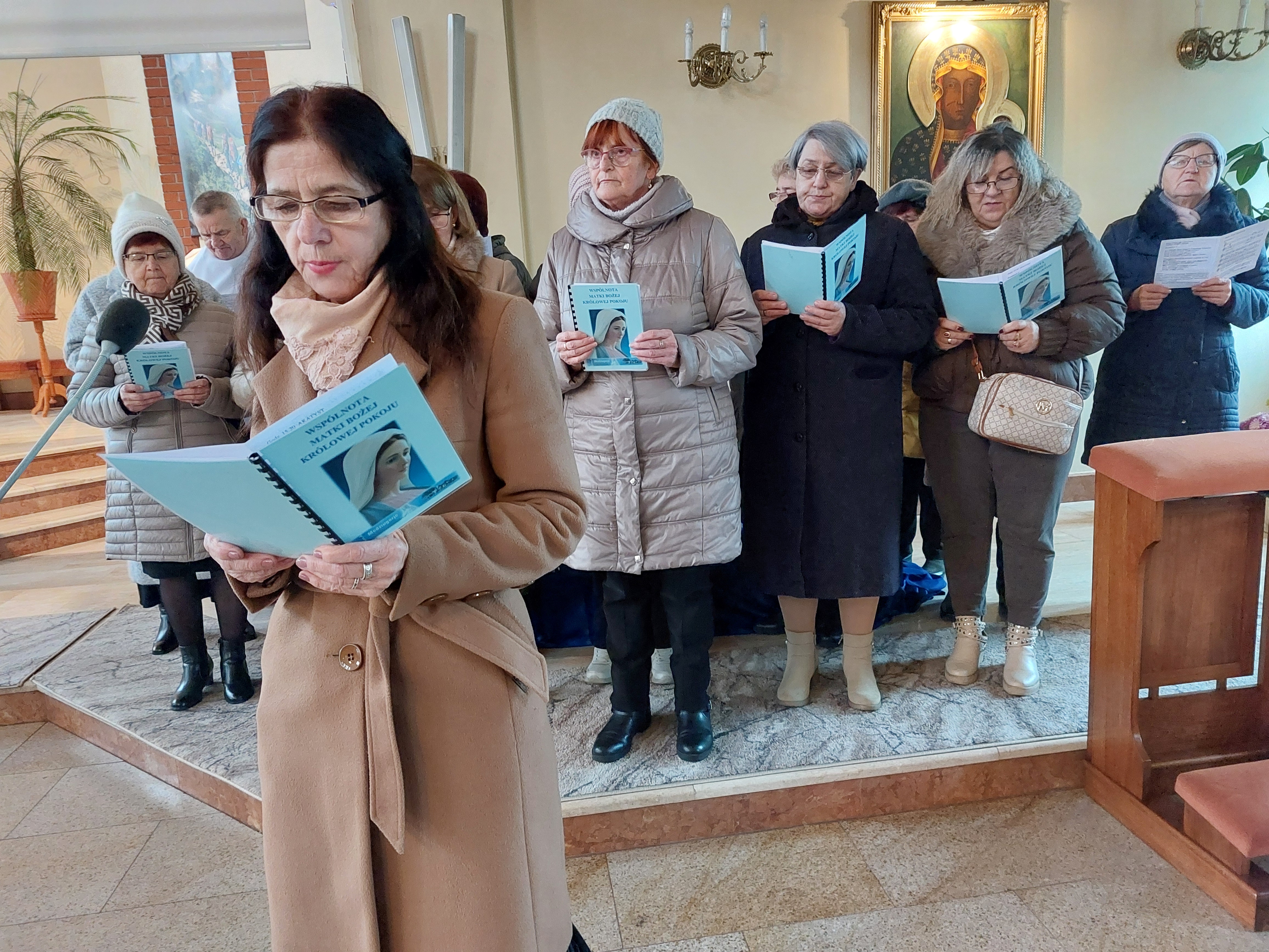 W Uroczystość Niepokalanego Poczęcia Najświętszej Maryi Panny wspólnota Koronki Pokoju z parafii pw. św. Jadwigi Królowej w Ostrowcu Świętokrzyskim zaśpiewała Akatyst ku czci Bogurodzicy. Członkowie Wspólnoty Królowej Pokoju żyją orędziami Maryi z Medziugorje. Obecnie do wspólnoty należy 30 osób, a jej opiekunem jest ks. Stanisław Gurba. Spotkania modlitewne odbywają się w każdą środę po Mszy św. wieczorowej. Natomiast każdego roku, 8 grudnia. trwają na modlitwie w Godzinie Łaski. Podczas Mszy św. o godz. 12.00 grupa ta wykonała Akatyst, jeden z najstarszych hymnów ku czci Bogurodzicy. Ten hymn liturgiczny dla Kościołów Wschodu, śpiewany jest a capella w postawie stojącej. Wspólnota wykonała śpiew po raz drugi, ale i tym razem przygotowywała się podczas prób, które też miały charakter modlitewny.