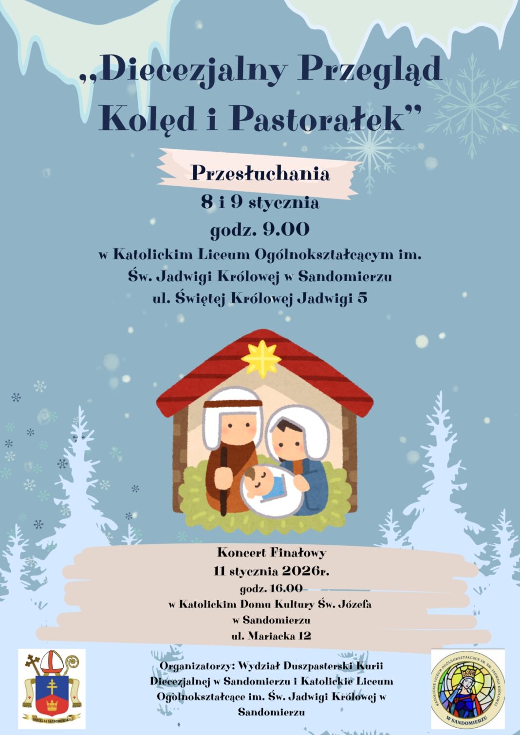 Koncert Finałowy Diecezjalnego Przeglądu Kolęd i Pastorałek  niedziela, 11 styczeń 16:00 niedziela, 11 styczeń 18:00 Sandomierz, Dom Katolicki ul. Mariacka 1227-600 Sandomierz Woj. świętokrzyskie Kategorie: Diecezjalne, Wydarzenia, Zaproszenia PODZIEL SIĘ Facebook Twitter