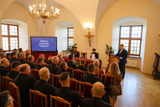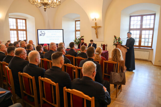Wykład inauguracyjny pt. „Odwaga kategorii. Postępowy ateizm a Bóg miłości” wygłosił ks. dr hab. Miłosz Hołda, prof. UPJPII. W wykładzie inauguracyjnym przedstawił współczesne wyzwania, jakie dla chrześcijaństwa stanowi tzw. postępowy ateizm. Wyjaśnił, że w odróżnieniu od dawnych nurtów, które negowały istnienie Boga w imię rozumu czy nauki, nowe formy ateizmu koncentrują się na krytyce chrześcijańskiego obrazu Boga miłości. Wskazał, że według zwolenników tego podejścia, dzisiejsze wyższe standardy moralne stawiają pod znakiem zapytania tradycyjne rozumienie Boga jako wszechmocnego i dobrego. Podkreślił, że jest to dla wierzących wezwanie do „odwagi kategorii” – czyli do obrony prawdy o Bogu miłości nie tylko w refleksji teologicznej i filozoficznej, ale przede wszystkim poprzez świadectwo życia i kształt wspólnoty Kościoła, w której ludzie powinni doświadczać Jego obecności i miłości.